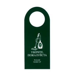 Երկկողմանի դռան բռնակի «Խնդրում ենք չխանգարել / Խնդրում ենք մաքրել» ցուցանակ՝ պատրաստված լամինացված ստվարաթղթից: Չափսը՝ 190x90 մմ, անցքի տրամագիծը՝ 50 մմ: Ստվարաթղթի հաստությունը՝ 1 մմ: