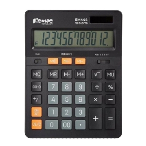 Комус EM444 հաշվիչն անփոխարինելի օգնական է գրասենյակում, դպրոցում և տանը: Գործառույթների օպտիմալ փաթեթը կօգնի ավտոմատացնել հաշվարկները՝ քառակուսի արմատի հաշվարկ, վերջին մուտքագրված արժեքի ուղղում, կրկնակի հիշողություն, նշագծման հաշվարկ: